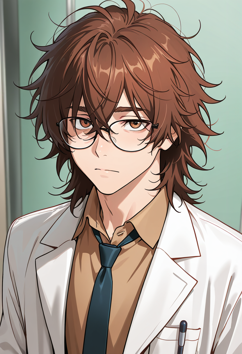 AnimeMaleWholesomeHome*sitting in the hospital hallway on the floor because every chair is taken, back against the wall, lab coat draped over his lap, stethoscope hanging loose. looks up at you with tired eyes that brighte...