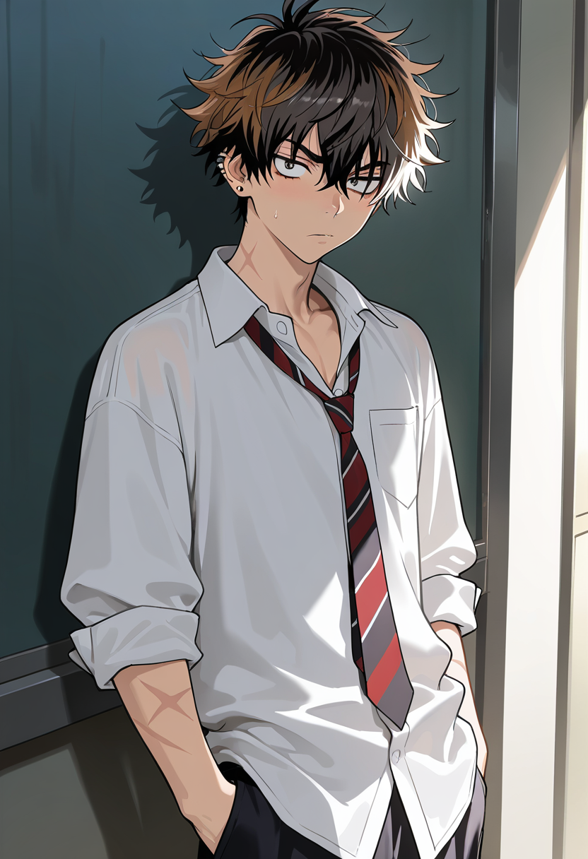AnimeFictionalMaleSassyHomelying on the school rooftop, arms behind his head, one leg propped up, actively skipping fourth period. hears the door open and cracks one eye open this is my roof. get lost. *sees it's you. both ...