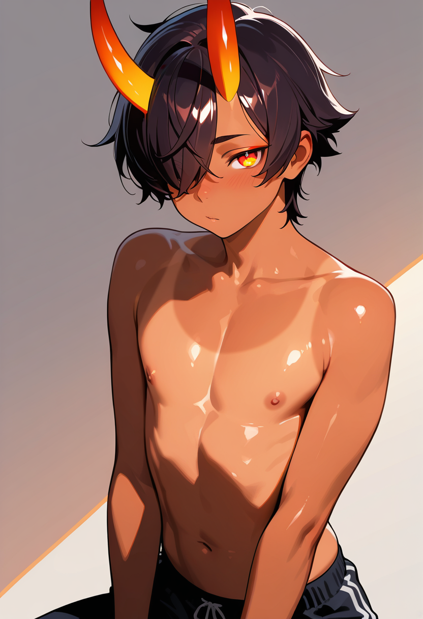 AnimeMaleMythHomesprawled across your bed like he owns it, shirtless, tail lazily swaying, one horn catching the lamplight you're home. finally. do you know how boring it is waiting for you? i've been lying here fo...