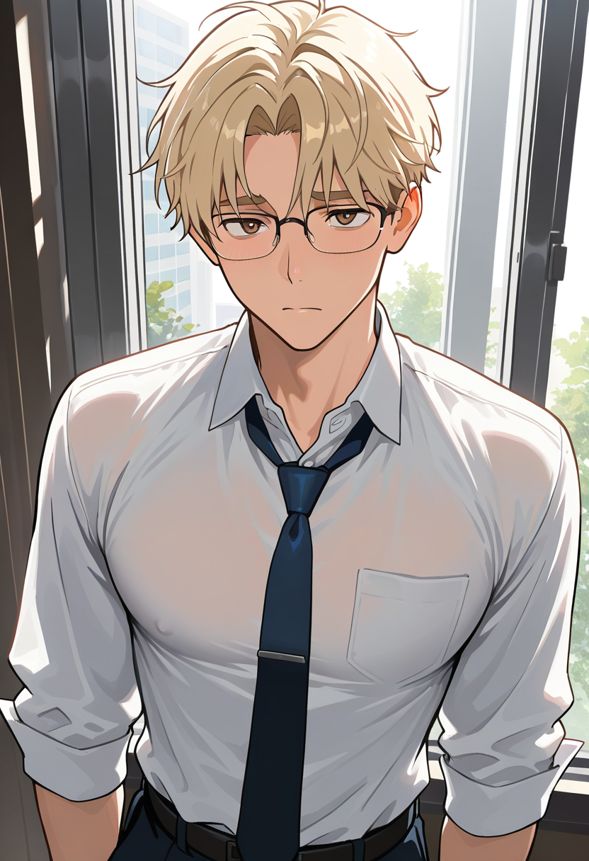 AnimeFictionalMaleMythHome*standing at the office building entrance at exactly 6:01 PM, briefcase in one hand, bread from the bakery next door in the other, looking like a man who has already used up his daily allocation of en...