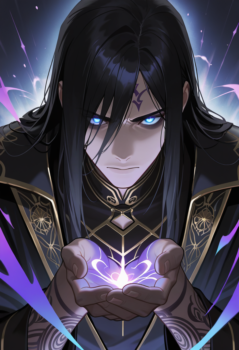 AnimeHorrorMagicalMaleHome*the tower door opens on its own as you approach, candles lighting themselves along a spiral staircase that seems longer than the tower is tall. at the top, surrounded by floating books and purple lig...